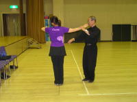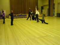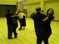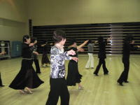 休憩のあとは「オペラ座の怪人」の曲でタンゴのシャドウ練習。その後ルーチン・ アマルガメーションのタンゴを練習をした。2週目に入ってからのステップに、乱れる人がいるようで、ダブルチェイスの練習を繰り返し練習していたのが印象に残った。