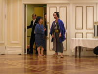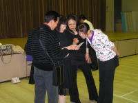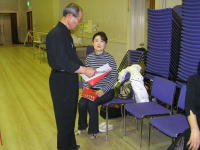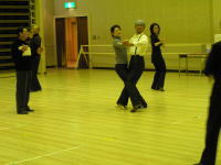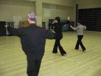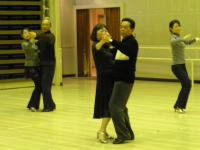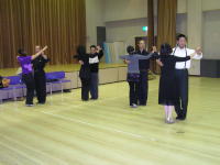 次は懐かしい「アザミの歌」のワルツで、シャドウの練習。仕上げは4組が4隅に位置し、ワルツのフォーメーションの練習を行った。全体のステップが揃うようになって、踊りの途中で2回メンバーチェンジする難しいステップに挑戦したが、無難にこなしていた。