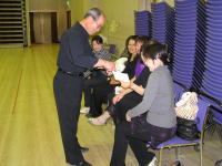 ルーチンステップの難易度が高いだけに、新人が入ってきたときの対応が問題であるが、宝木講師は練習風景の写真にもあるように、個別メニューで懇切丁寧に新人を指導されていた。