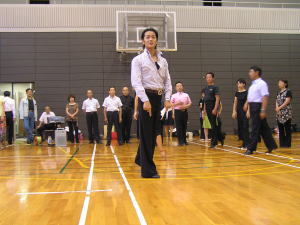 午前の実技講習は、JDC 全日本 ラテンファイナリストの真田 啓嗣・中野 愛子組が講師として招かれ、ルンバをテーマに講習が行われた。ウオークの仕方、重心の取り方、手の使い方、リードの仕方、練習の仕方、カウントの取り方等、多くの項目について実際に自分で踊りながらの指導に受講生もよく理解できたようだった。