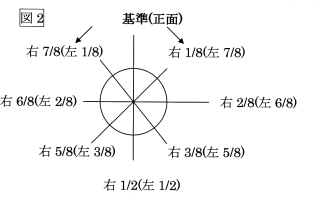 このようにダンスでは1周を8等分して回転量を示し(図2)、必ず第○歩目から第△歩目の間で右又は左に○回転しなさいと規定しています。前述の右1/4回転は、「第1歩目から第2歩目の間で右に1/4回転」したということになります。