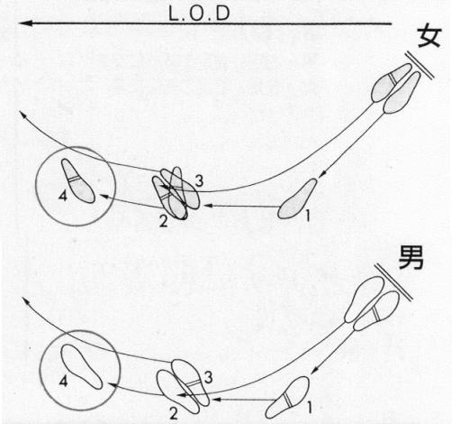 この原因として考えられることは、Waltzの場合、次にNatural Turn(ナチュラル・ターン)の前半に続けることが多く、通常のNatural Turnのスタートの予備歩と同じように左足前進と考えて踊ってしまい、又Quick Stepでは次のForward Lock