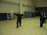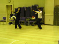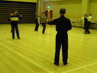 休憩のあとは「オペラ座の怪人」の曲でタンゴのシャドウ練習。その後ルーチン・ アマルガメーションのタンゴを練習をした。2週目に入ってからのステップに、乱れる人がいるようで、ダブルチェイスの練習を繰り返し練習していたのが印象に残った。