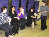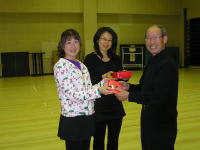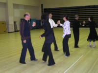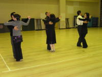 次は懐かしい「アザミの歌」のワルツで、シャドウの練習。仕上げは4組が4隅に位置し、ワルツのフォーメーションの練習を行った。全体のステップが揃うようになって、踊りの途中で2回メンバーチェンジする難しいステップに挑戦したが、無難にこなしていた。