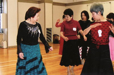 女性会員がやや多いが、流石ベテラン揃い男性役が出来る女性が4〜5人おり、レッスンに支障は無いとのこと。
