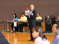 大会名誉会長の中川秀直衆議院議員が公務で出席できない為、自分もダンスをたしなまれると云う、奥様が駆けつけ選手の皆様に激励の挨拶をされた。