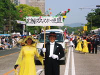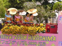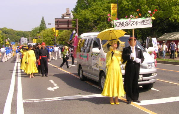 5月3日〜5日に広島市で開催された「ひろしまフラワー・フェスティバル」の3日の「花のパレード」に広島県ダンススポーツ連盟及び広島市ダンススポーツ連盟の会員32名が参加し、ダンススポーツの普及を大いにPRしました。 「中高年の皆さん Shall We Dance